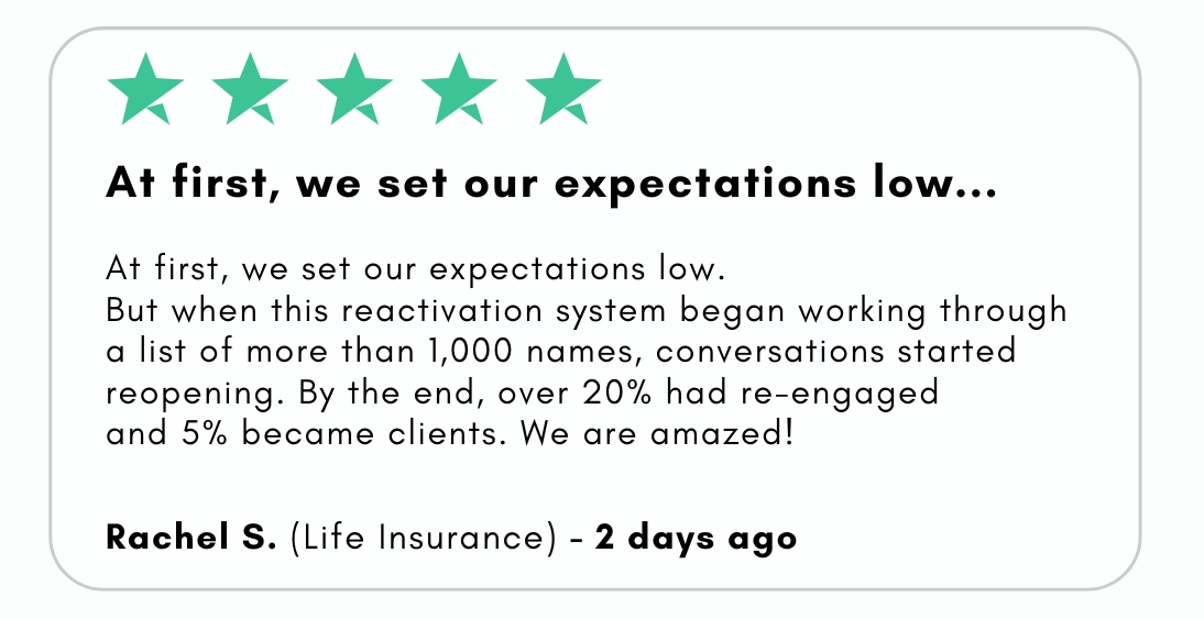 Today, I can consistently reactivate up to 50% of dormant leads without adding risk.